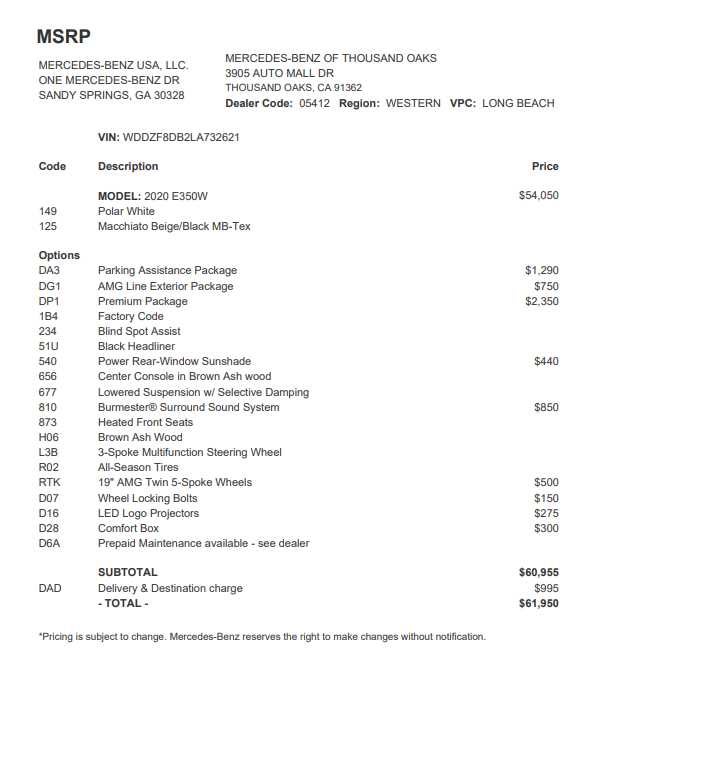 - Vehicle Name: Mercedes-Benz E-Class