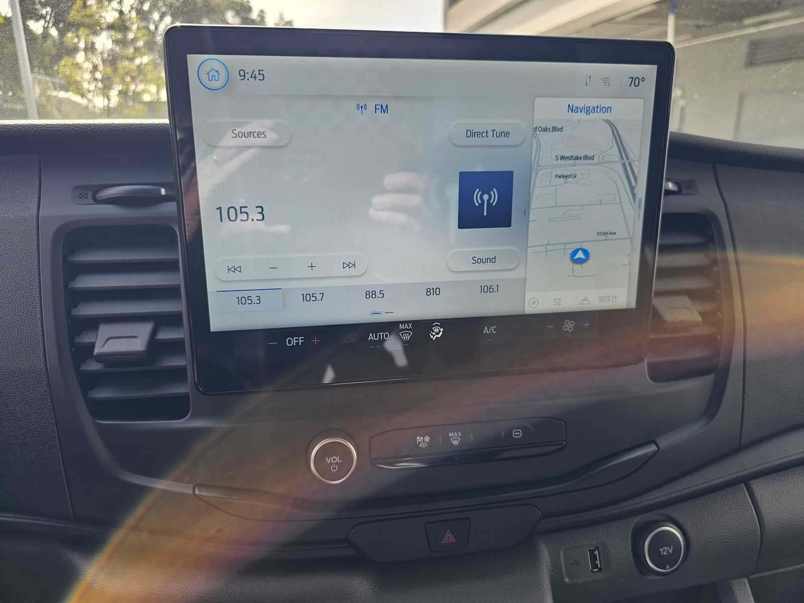 - Radio: AM/FM Stereo w/SYNC 4 -inc: 12" multi-function display, Bluetooth®, dual USB ports, embedded voice recognition, connected navigation w/3 years of service available through Ford Pro Intelligence, 4 speakers (front), Ford commercial solutions energy management and vehicle insight tools (access to the Ford charge network, public charging account setup and management, driver public charging tools, home charging reimbursement, Ford E-Telematics dashboard and connected navigation) included for commercial and business customers complimentary for 1 year