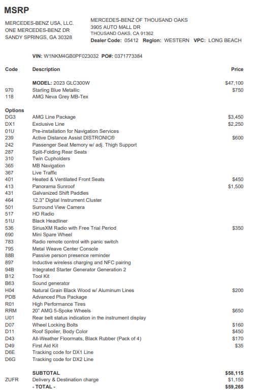 - Vehicle Name: Mercedes-Benz GLC