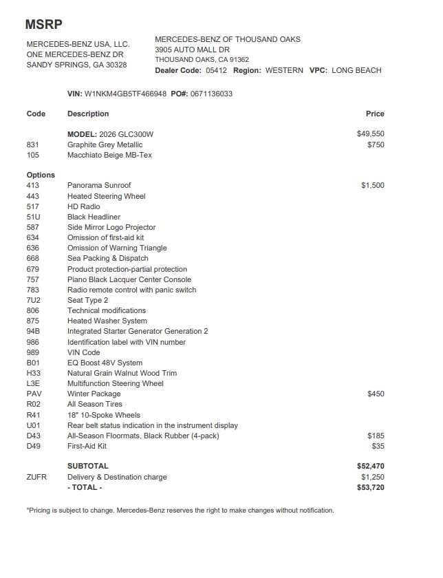 - Vehicle Name: Mercedes-Benz GLC